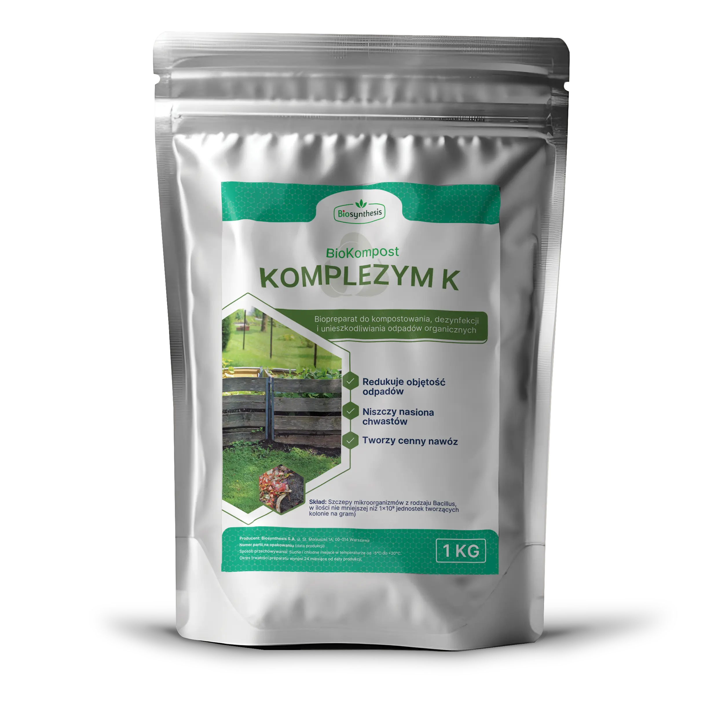 Skład: Szczepy mikroorganizmów z rodzaju Bacillus, w ilości nie mniejszej niż 1x10^9 jednostek tworzących kolonie na gram)