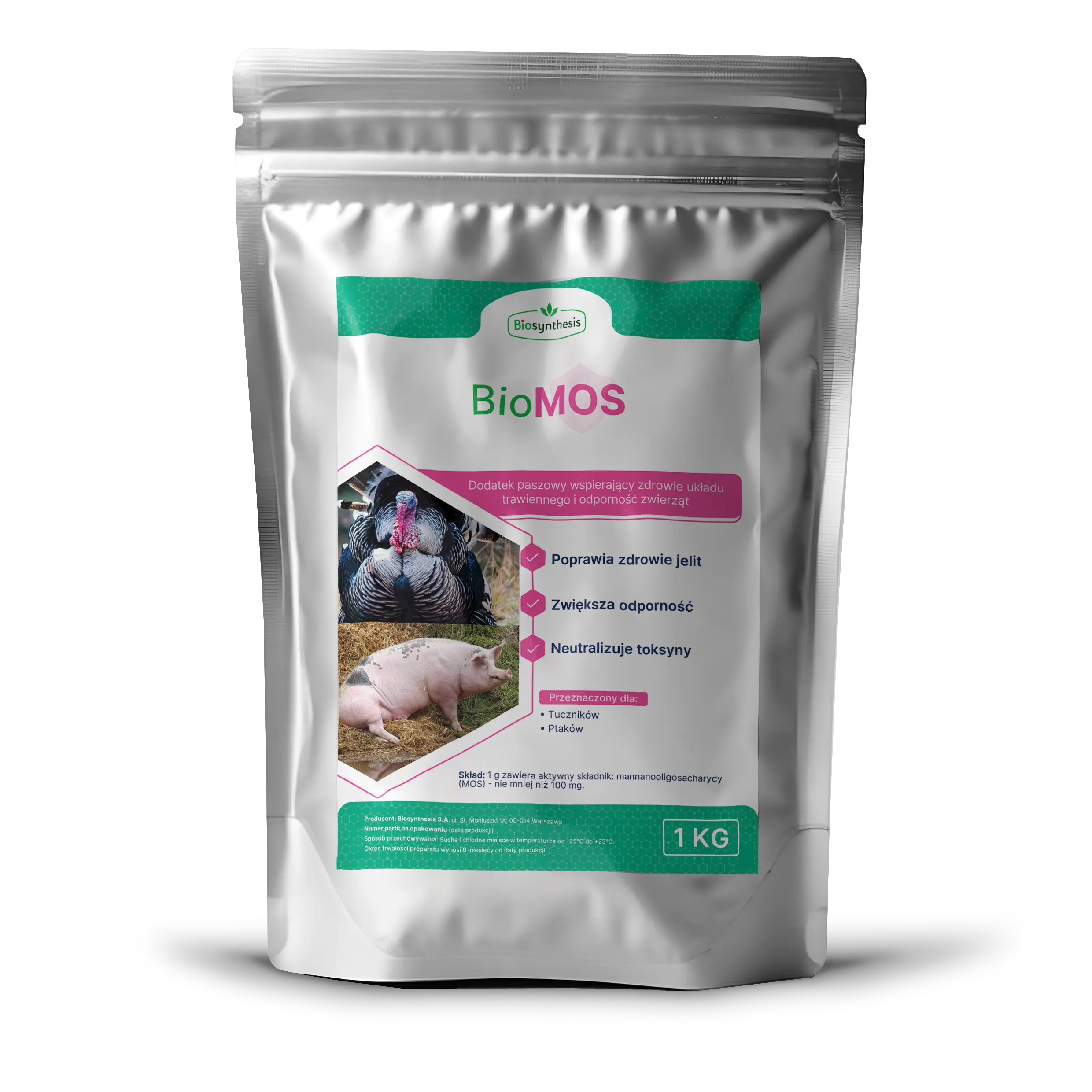 Działanie dodatku paszowego BioMOS opiera się na blokowaniu patogennych mikroorganizmów poprzez wiązanie substancji podobnej do pektyny, znajdującej się na ich powierzchni cząstek preparatu. W ten sposób wspomaga rozwój korzystnej mikroflory żołądka i wzmacnia odporność zwierząt i drobiu.